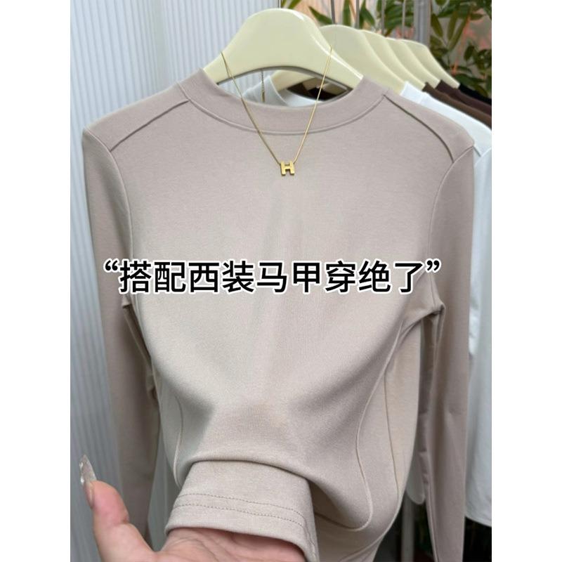 Small stand-up collar polished bottoming shirt women's spring design fish bone front shoulder long-sleeved shirt solid color top