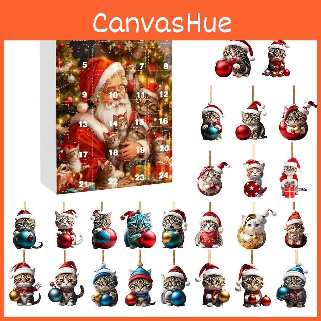 Christmas Advent Calendar With Cat Theme And Acrylic Decorations For Holiday Gift Ideas