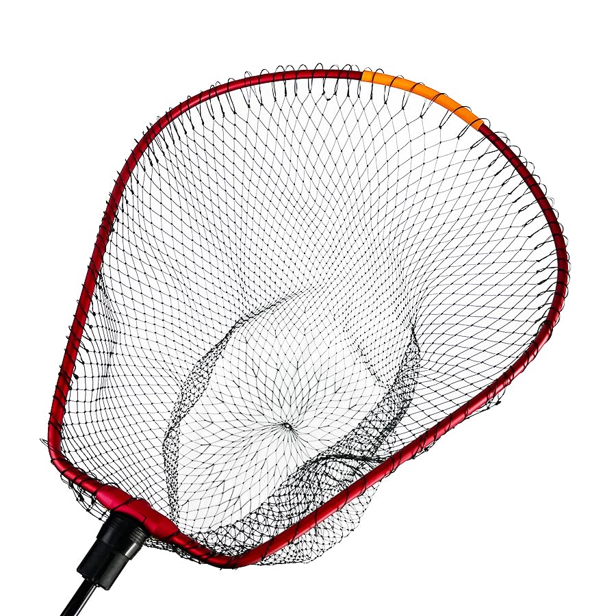 This landing frame features a deep monofilament net designed for use in saltwater fishing. It also features a landing marker for easy visibility when fishing from high places or at night. The frame size is 45 x 55mm, and you can choose from two frame colors: red and olive.