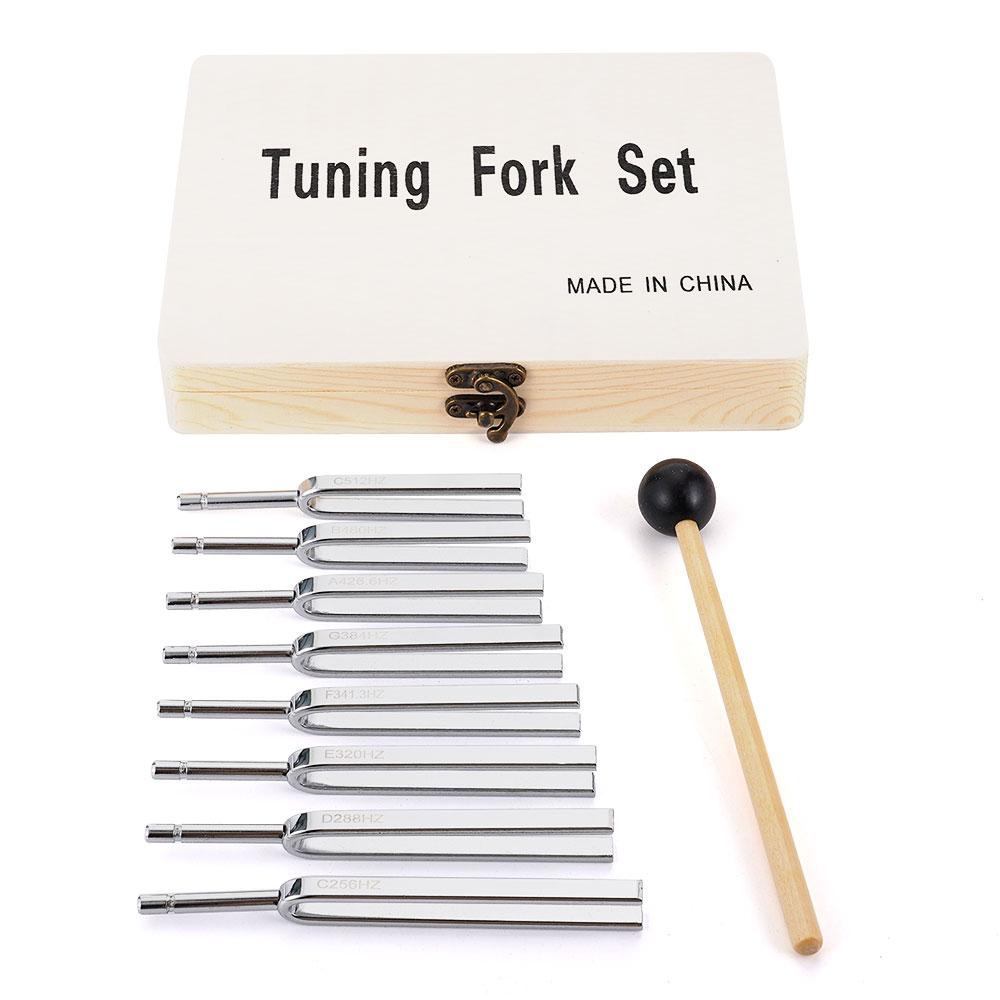 256Hz-512Hz Tuning Fork Set for Sound Healing Therapy Steel Tuning Forks with Wooden Case & Hammer for Chakra Balance Meditation
