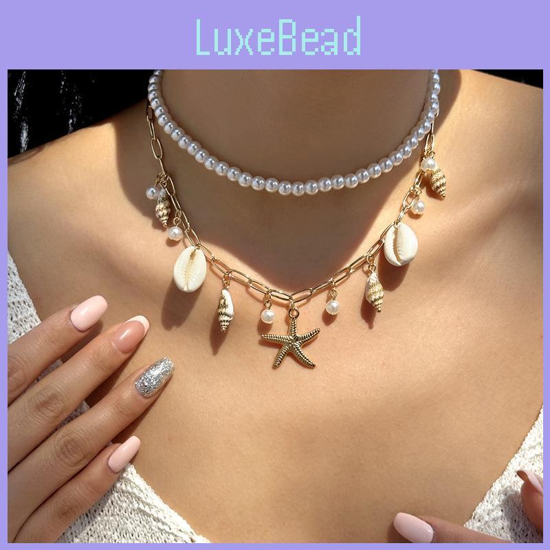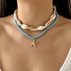 Bohemian Starfish Shell Bead Necklace With Layered Chain For Women