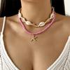 This bohemian-style shell bead necklace for women features a layered design with a zinc alloy chain and a shell-shaped pendant, delivering a fashionable summer accessory.it showcases a durable electroplated finish in gold, pink, blue, or white. Ideal for beach outings or casual summer wear, it adds a natural touch to everyday outfits. To maintain its shine, wipe clean with a damp cloth.