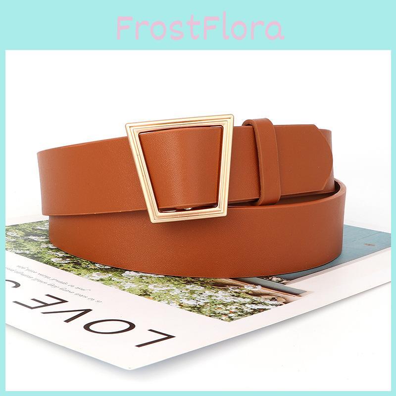 Womens Vintage Fashion Leather Belt With Trapezoid Metal Buckle And Adjustable Length For Trendy Outfits
