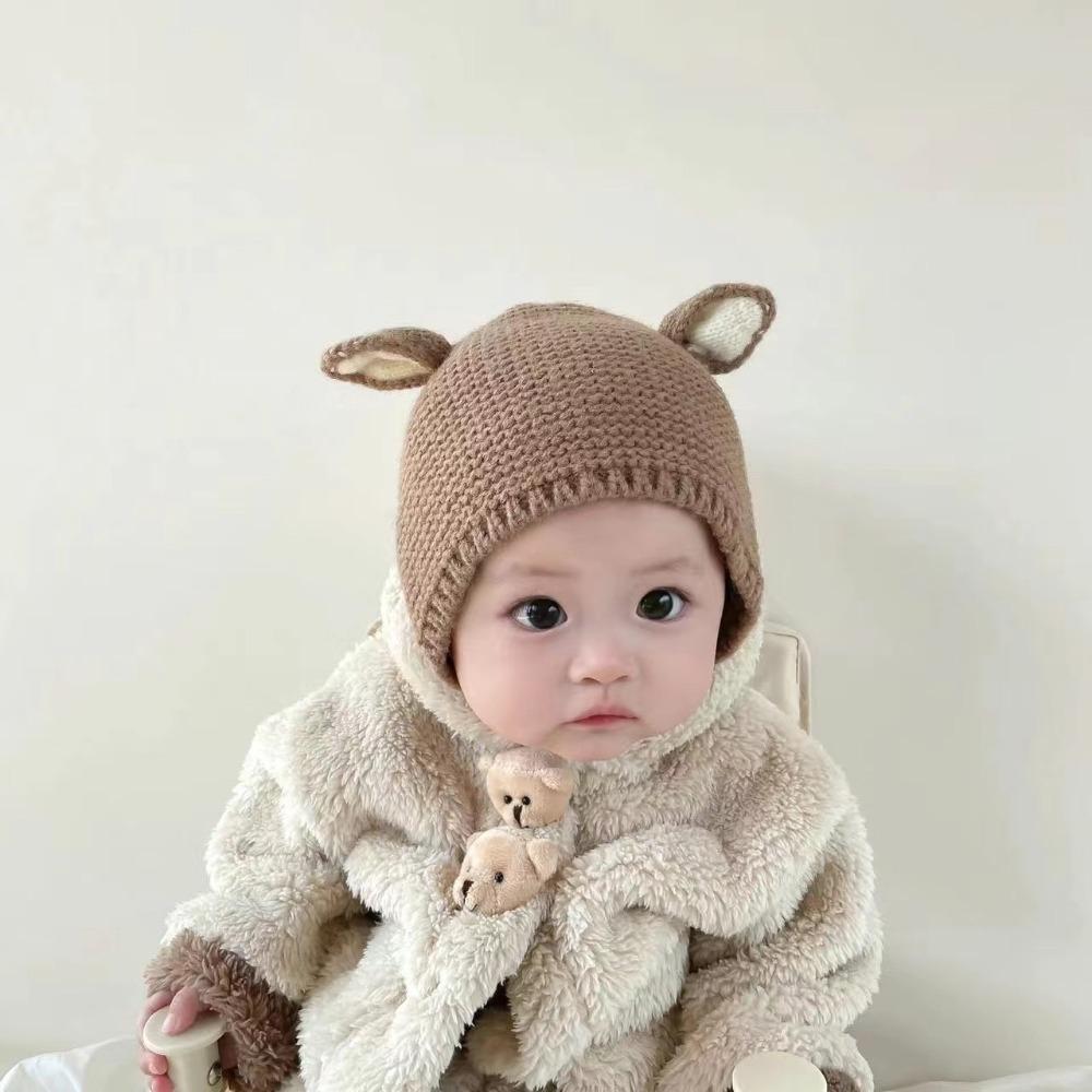 Keep Warm Knitted Beanie Hat Solid Color Baby Hat Cute Ear Protection Cap Kids Boy Girl