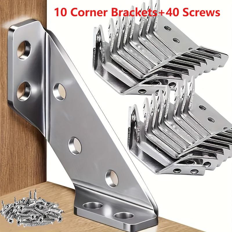 50pcs Set (10 Corner Brackets+40 Screws) Metal Corner Brackets with Screws -90 ° Angle Support, for Furniture and Wooden Frames