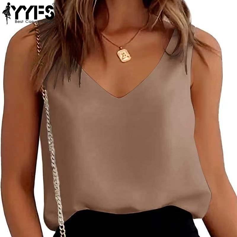 YYFS Moda dame ocazional vară primăvară imprimeu culoare uni fără mâneci cu decolteu în V bluze și cămăși