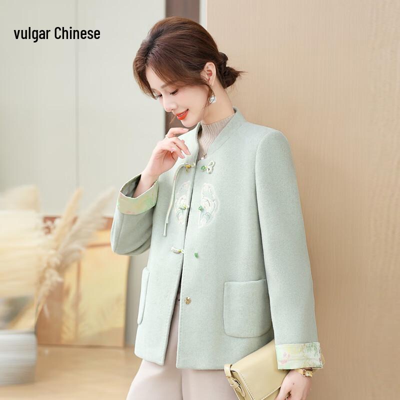 Elegant New Chinese Style Wool Blend Coat for Women