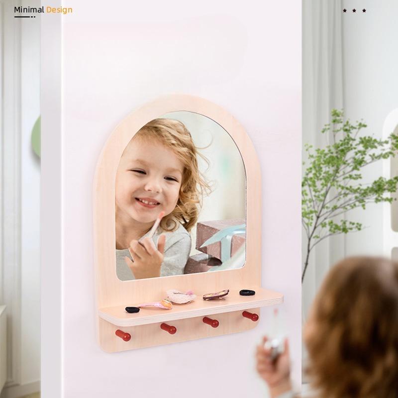Children's Nordic style simulation three-dimensional hanging wooden makeup mirror dresser makeup accessories ornaments play house toys