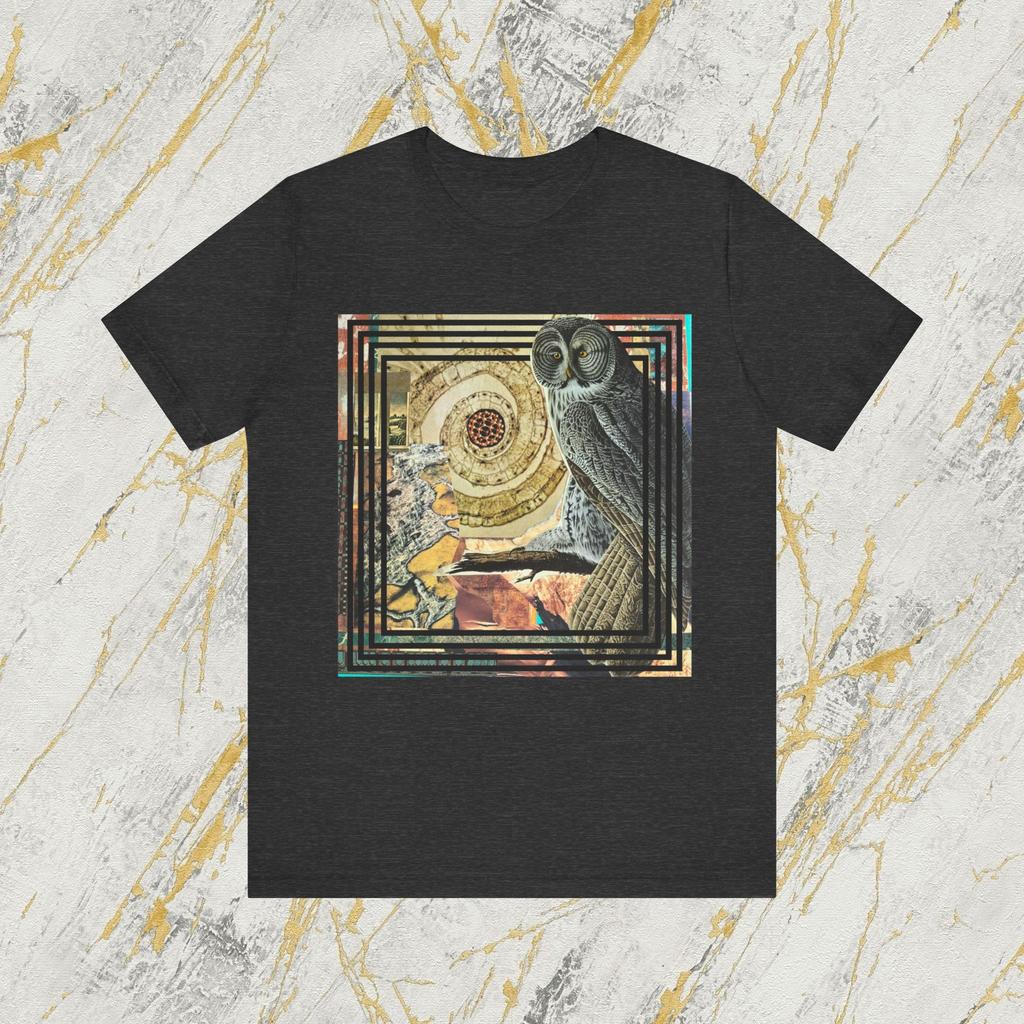 Owl Graphic Black Graphic T Shirt Made From Handmade Collages Gift for Men Boyfriend Tee Jersey Short Sleeve Tee Owl Graphic Art