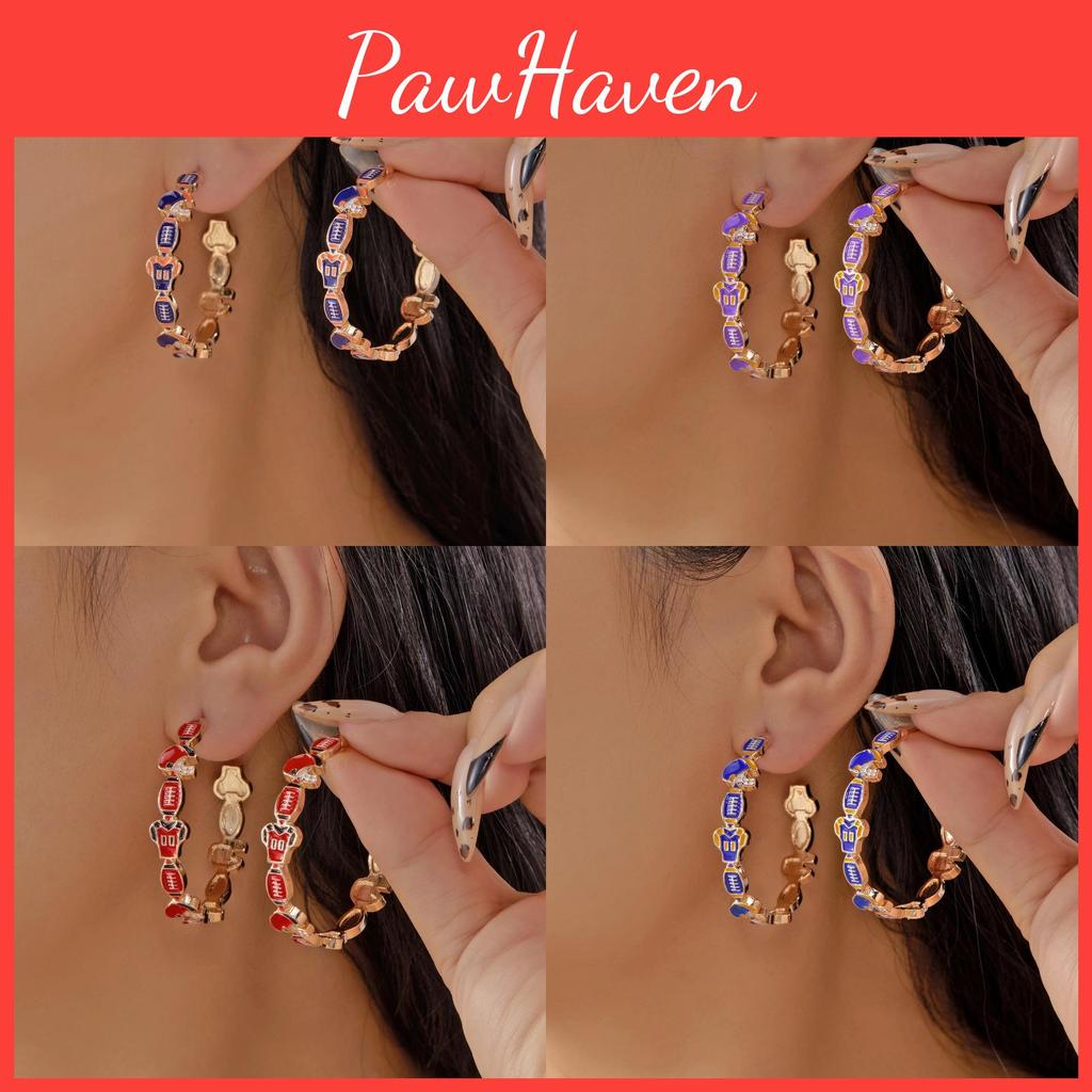 Sports Fan Football Volleyball Geometric Enamel Earrings For Women