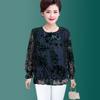 Women's Silk Blouse Spring Autumn Three-quarter Sleeve Loose Fit Rhinestone Plus-size Blouse Mesh Floral Velvet Pullover
