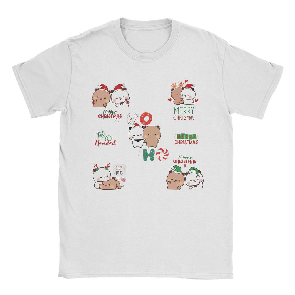 Vintage T Shirt DuDu Bear and BuBu Panda Merry Christmas Pack! Cotton T-Shirts Hipster Tshirt for Men Summer Short Sleeve Tees
