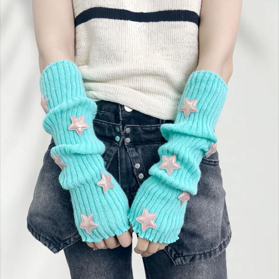Yousheng Knitted Arm Warmers Girls Fingerless Long Wrist Gloves Winter Star Arm Sleeves with Thumb Hole for Women Street Wear Parties