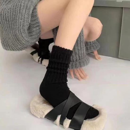 Yousheng 1 Pair Women Crew Socks Solid Color Ribbed Calf Scrunch Boot Socks Elastic Warm Socks Versatile Footwear Accessory