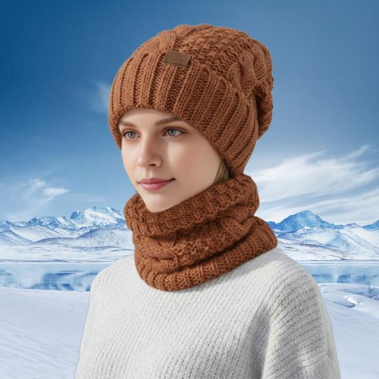 Stylish Winter Accessories: This knitted hat and neck scarf set combines functionality with style, enhancing your autumn and winter wardrobe. Its simple yet elegant design makes it a must-have fashion piece for seasonal layering.