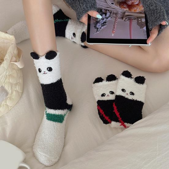 Yousheng 1/5 Pairs Sleeping Socks Cartoon Panda Design Thickened Coral Velvet Warm Winter Socks Mid-Tube Floor Socks