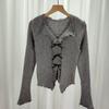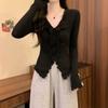 Solid Color V-neck Knitted Bottoming Shirt for Women Autumn New Slim Fit Short Long-sleeved Sweater Top