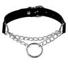 Round Layered Necklace Black Chain Necklaces for Women Men Pu Leather Gothic Punk Statement Choker Necklace Cosplay Jewelry