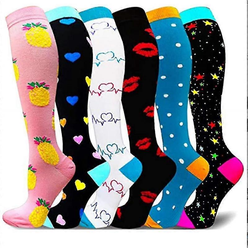 Compression stockings for women men, 6 pairs of support stockings medical compression socks colorful thrombosis stockings with 15-20 Mmhg, compression