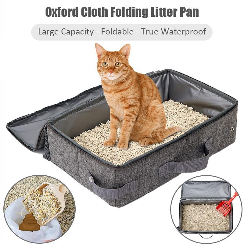 Collapsible Waterproof Outdoor Cat Litter Box with Shovel Oxford Cloth Travelling Kitten Puppy Portable Litter Pan Pet Supplies
