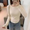 Curved hem front shoulder top women's simple card waist pleated long-sleeved shirt autumn design bottoming shirt