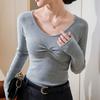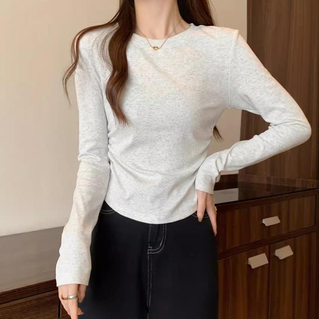 Simple and fashionable slim-fitting thin shirt top, spring pleated card waist long-sleeved women's inner bottoming shirt
