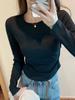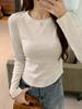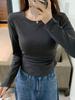 Retro front shoulder long-sleeved shirt women's spring new waist pleated bottoming shirt versatile simple top