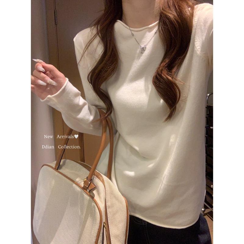 Simple round neck basic knitted bottoming shirt women's autumn and winter casual loose inner top curled sweater