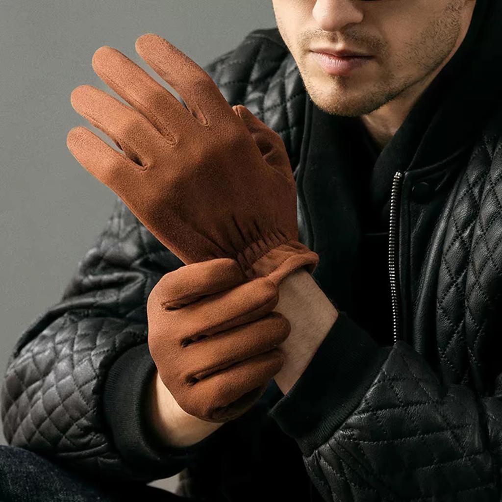 Winter Outdoor Cycling Suede Leather Gloves for Men Windproof Thick Warm Gloves Touch Screen Soft Skiing Gloves Accessories