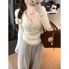 Textured neck knitted sweater soft waxy sweater autumn and winter slim-fitting waist bottom long-sleeved women's high-end inner top