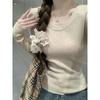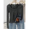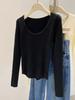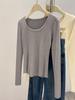 Retro u-neck knitted sweater bottoming sweater women's autumn and winter soft waxy long-sleeved front shoulder slim-fitting and thin inner top