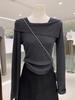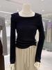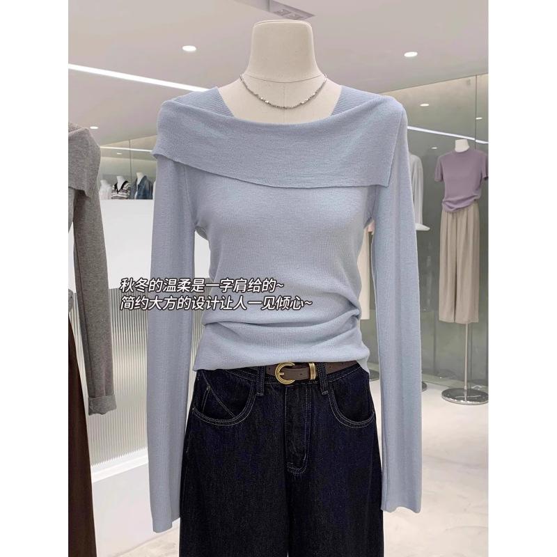 Irregular one-word collar off-shoulder top women's spring soft waxy knitted sweater temperament slim-fitting bottoming shirt