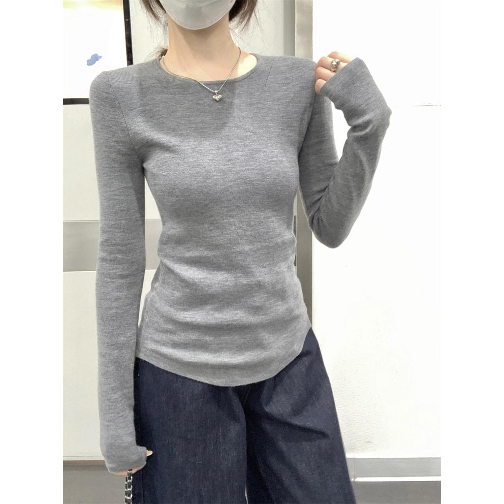 Basic bottoming shirt women's autumn and winter inner with crew neck sweater slim-fitting and thin long-sleeved soft waxy knitted sweater top