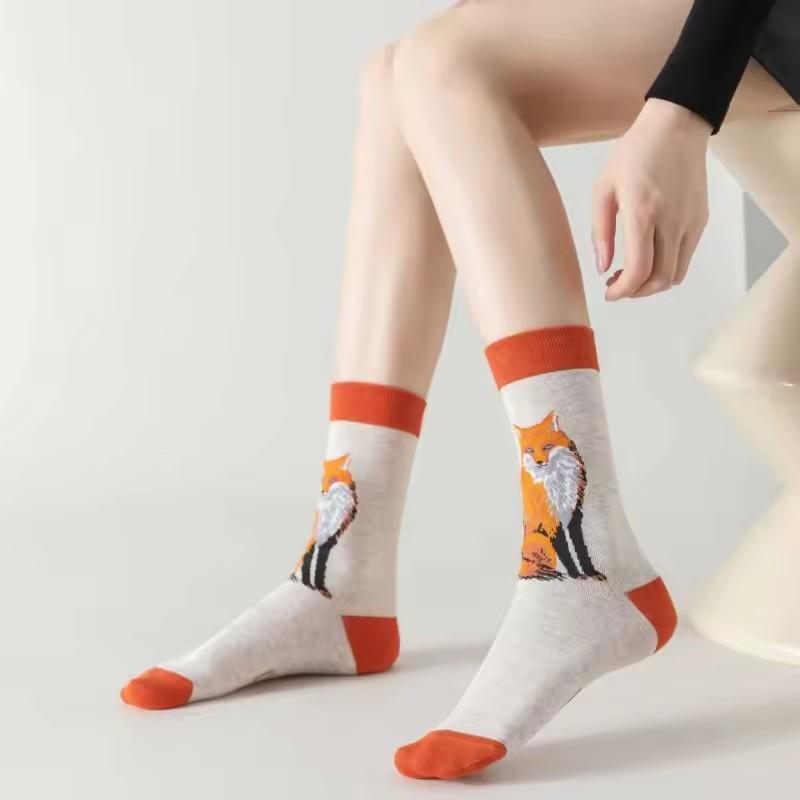 Cute Women's Socks Cartoon Animal Fox Series Fun Fashion Casual Four Seasons Men's and Women's Anti-Friction Mid-Calf Socks