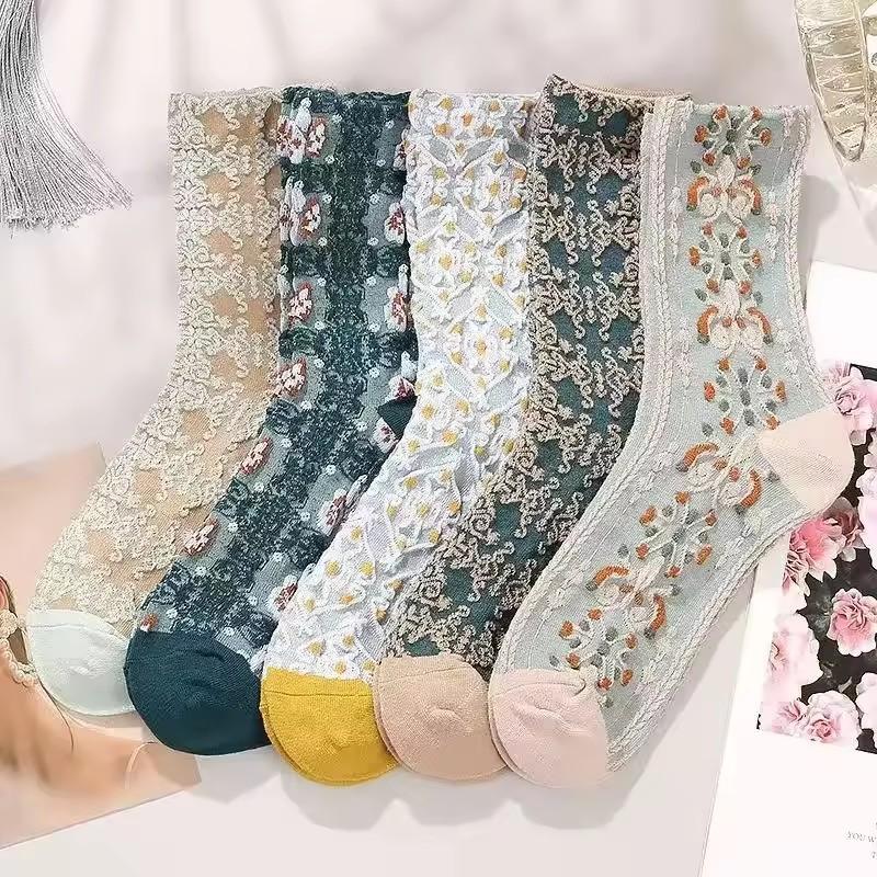 5 Pairs Women Vintage Cute Socks Set Female Lady Harajuku Kawaii Girl Floral Sport Short Socks Set for Women Harajuku Hosiery
