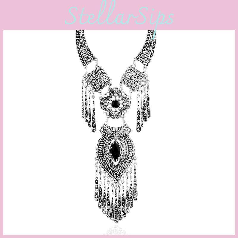 Ethnic Style Simulation Gemstone Decoration Women Necklace With Tassel Design For Fashionconscious Women