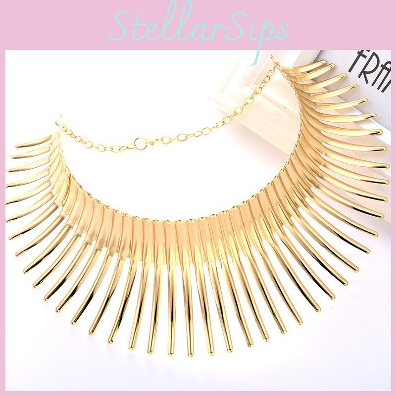 Fashion Solid Color Curved Design Women Metal Necklace Collar For Trendy Outfit