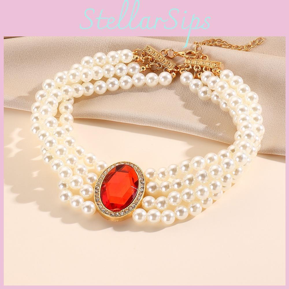 Palace Elegant Multi Layered Simulated Pearl Gemstone Necklace Neck Accessory For Women