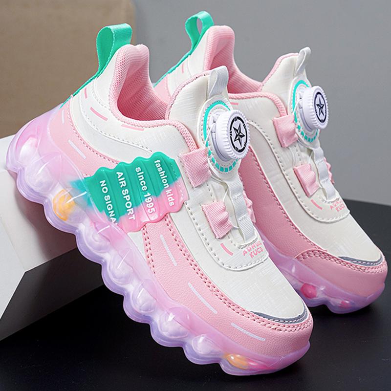 28-38 copii din piele roz rezistent la apă butoane de rotație pantofi sport băieți baschet pantofi sport fete pantofi sport