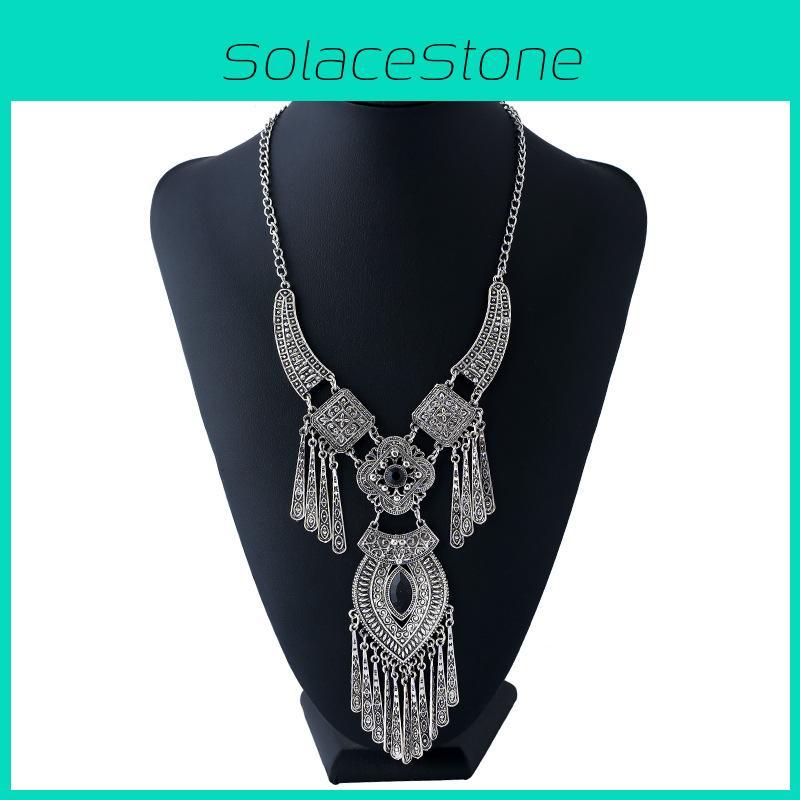 Ethnic Style Simulation Gemstone Decoration Women Necklace With Tassel Design For Fashionconscious Women