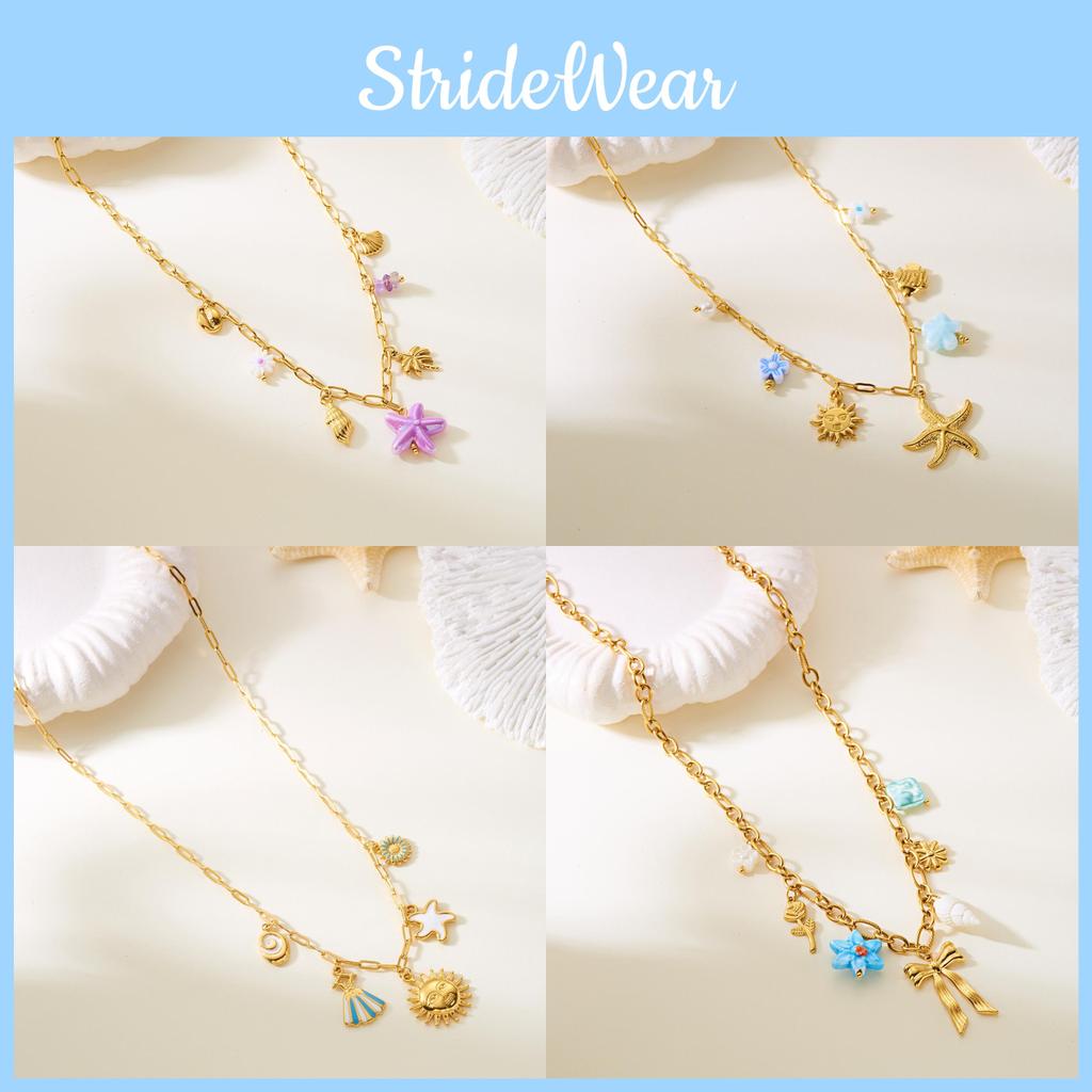 Summer Jewelry Multilayer Stainless Steel Sea Turtle Shell Pendant Necklace For Women