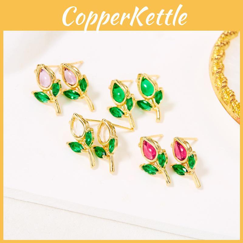 Romantic Tulip Flower Stud Earrings For Women Copper Glass Spring Jewelry