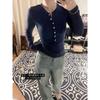 Premium contrasting color button front shoulder knitted bottoming shirt women's autumn and winter slim and thin Spice girl long-sleeved inner top