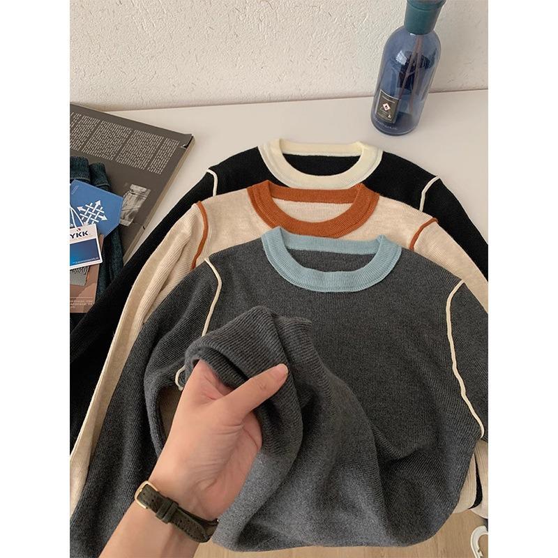 Contrasting color crew neck knitted bottoming shirt women's spring slim-fitting and thin top, warm inner sweater
