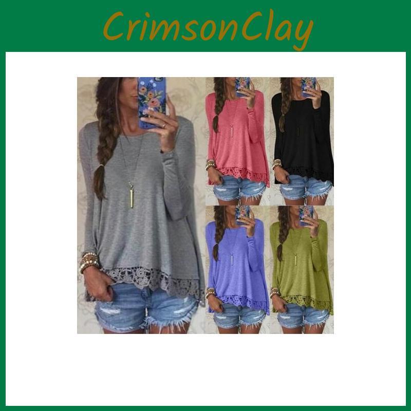 Chic Femme Blouse Manches Longues Dentelle Sweat Lche T-shirt Perfect For Casual Occasions