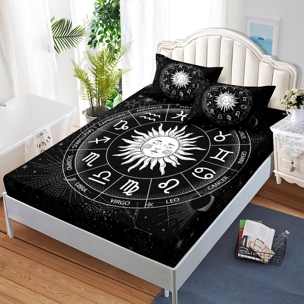 Mattress Mattress Cover Three-Piece Set Black Twelve Constellation Mattress Protective Cover