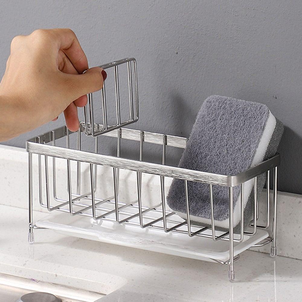 Rustproof Kitchen Sponge Holder Self-draining Drain Rack Organizer Kitchen Sink Rack Countertop