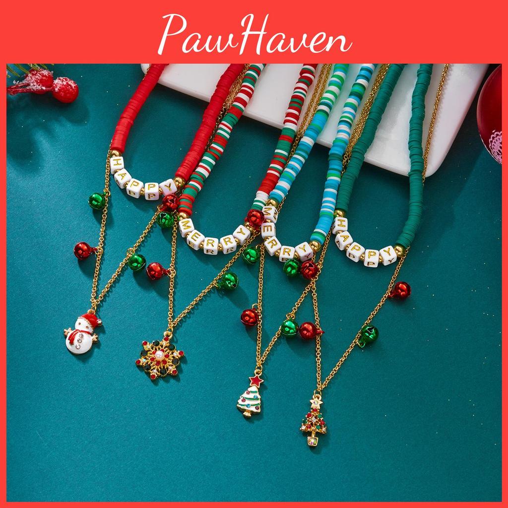 Seasonal Santa Claus Necklace With Snowflake And Bell Charms For Christmas Celebrations