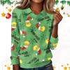 Women's Fashion Christmas Print Lapel Long Sleeve Casual Crewneck T-Shirt Top