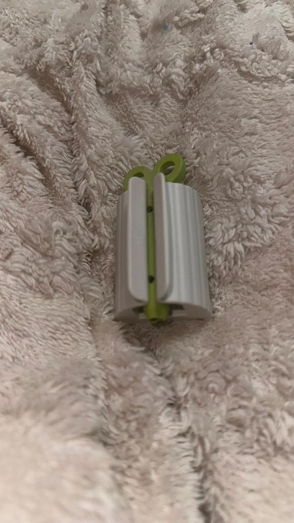 este un stoarcător de tuburi de pastă de dinți, una dintre acele invenții care par nesemnificative până când le folosești și îți dai seama de cât de mult produs risipeai. Este soluția definitivă pentru cei dintre noi cărora le displace să vadă tubul tot mototolit și maltratat în chiuvetă. Designul este super simplu: constă dintr-o bază albă și o cheie verde. Pur și simplu glisați capătul tubului în fanta cheii și, rotind-o, tubul se rulează uniform. Ceea ce îmi place cel mai mult este că aplică o presiune constantă care împinge până la ultima picătură de pastă spre orificiu, permițându-vă să folosiți 100% din conținut fără a fi nevoit să faceți jonglerii cu mâinile. În plus, păstrând tubul drept și ordonat, baia arată mult mai curat. Este un accesoriu ieftin, durabil și extrem de practic care se amortizează singur prin economisirea produsului pe termen lung